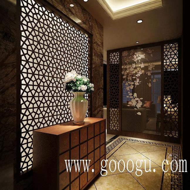 別墅中式裝飾|雙面繡隔斷|圓形木雕刺繡工藝裝飾