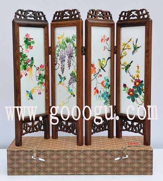 蘇繡四折屏風(fēng) 雙面繡小屏風(fēng) 中國工商銀行禮品 外事商務(wù)禮物