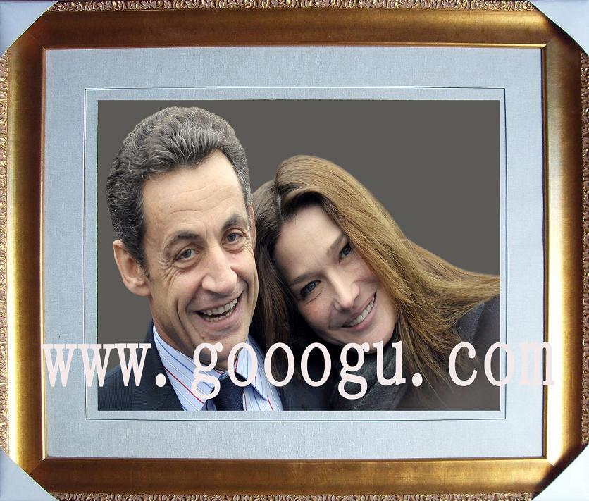 人物刺繡肖像訂制 法國總統(tǒng)薩科奇及夫人布呂尼人物照片刺繡照 手工刺繡