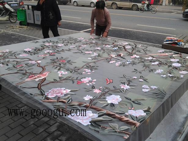 此蘇繡雙面繡刺繡隔斷現(xiàn)位于浙江省杭州市莫干山路梅苑賓館大廳.歡迎實地參觀!