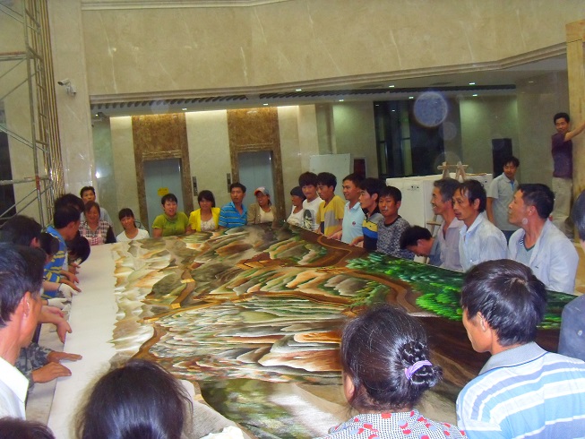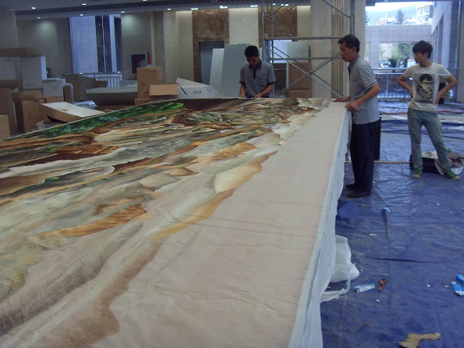 貴州盤江精煤股份有限公司是1999年經(jīng)貴州省人民政府批準(zhǔn),由盤江煤電集團(tuán)公司作為主發(fā)起人,聯(lián)合中煤進(jìn)出口公司、貴陽特鋼公司、防城港務(wù)局等七家單位共同發(fā)起設(shè)立的股份制企業(yè),盤江股份于2001年5月在上交所正式掛牌交易。 公司是盤江礦區(qū)煤炭開發(fā)主體。盤江礦區(qū)是我國十二五規(guī)劃建設(shè)的全國14個大型煤炭生產(chǎn)基地之一。礦區(qū)因與云南富源、宣威接壤,地處中國攀西六盤水這個資源富集金三角的最南端,又以豐富的煤炭資源稱冠江南,被譽(yù)為金三角下的一顆明珠。 2013年7月盤江股份集團(tuán)大樓新址即將完工,蘇州嬌古蘇繡負(fù)責(zé)承建新大樓一樓的刺繡隔斷工程,在時間有限的情況下,嬌古蘇繡負(fù)責(zé)人接到通知后緊鑼密鼓的安排各道工序,工藝師們都在加班加點(diǎn),在時間有限的情況下高效率的完成了任務(wù),6月底,嬌古蘇繡安排工作人員前往盤江股份集團(tuán)所在地貴州,為整體隔斷工程進(jìn)行裝裱并指導(dǎo)安裝。在經(jīng)過大家相互配合的情況下,隔斷的主體工程已經(jīng)安裝就位,盤江股份集團(tuán)公司的領(lǐng)導(dǎo)對嬌古蘇繡工作人員高效率的完成任務(wù)給予高度的評價,對刺繡工程的整體效果也是非常滿意。