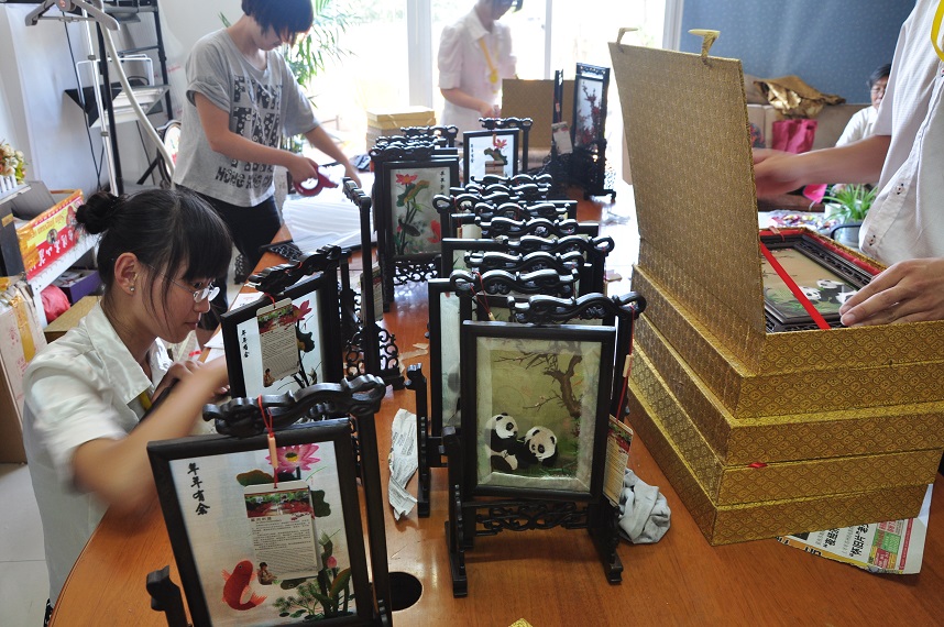 上一個(gè)季度是嬌古蘇繡又一個(gè)忙碌的季節(jié),蘇州泛洋船舶管理有限公司、南通能達(dá)建設(shè)投資有限公司等新老客戶來到蘇州嬌古蘇繡,在嬌古他們看到了純手工蘇繡的藝術(shù)魅力,紛紛贊賞。泛洋船舶即將在蘇州東山賓館舉行會議,今天特來嬌古蘇繡選一批會議紀(jì)念的禮品,泛洋船舶的沈總告訴我們“在眾多禮品行業(yè)中我們之所以選擇了蘇繡,是因?yàn)槲覀冇X得蘇繡是一種名族的文化,而且技藝精湛,好的蘇繡作品讓人嘆為觀止,沈總笑著說道現(xiàn)在習(xí)總書記出訪都帶蘇繡作為國禮,我們要響應(yīng)總書記的號召,選擇蘇繡是肯定沒錯(cuò)的。如今做蘇繡的企業(yè)很多,找一家正規(guī)的企業(yè)供貨是非常最重要的,在眾多企業(yè)中我們選擇嬌古蘇繡是因?yàn)閶晒抛龅奶K繡作品,做工精細(xì),服務(wù)也是讓我們非常滿意的”。