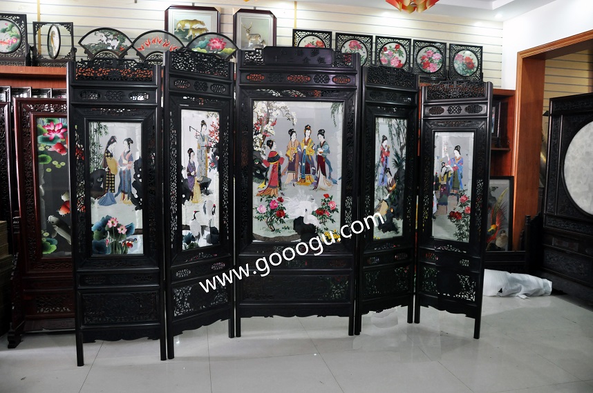 小說《紅樓夢》塑造了眾多栩栩如生的女性人物,其中又以林黛玉、薛寶釵為首的十二金釵最為人所稱道。近日嬌古蘇繡展示了一件與十二金釵題材有關的藏品雙面蘇繡屏風紅樓夢十二金釵。 這面屏風高230厘米,寬315厘米,共分5面,最大一面居中,內有4位美女,余下4面稍小,內各有2位美女。除人物外,屏風內還有孔雀、仙鶴、牡丹、翠竹、垂柳、蘭花、流水、石頭等中國畫傳統(tǒng)入畫景物。靈秀的人物與典雅的景物構成一個渾然一體的富貴畫面,呈現(xiàn)了十二金釵的風韻神貌和賈府的榮華場景。整件作品充分展現(xiàn)了蘇繡藝術五彩繽紛、絢麗耀目和精細、雅潔、秀美的風格特點。據嬌古蘇繡介紹,這款紅樓夢的十二金釵屏風是由8位中高級工藝師歷時半年完成,繡工質量達到行業(yè)較高水平,選用桑蠶絲線和木質邊框裝裱而成,這面屏風其工藝之精湛、細節(jié)之生動,毫不亞于一幅傳統(tǒng)的工筆畫,是一件難得的藝術精品,是非常值得收藏的。