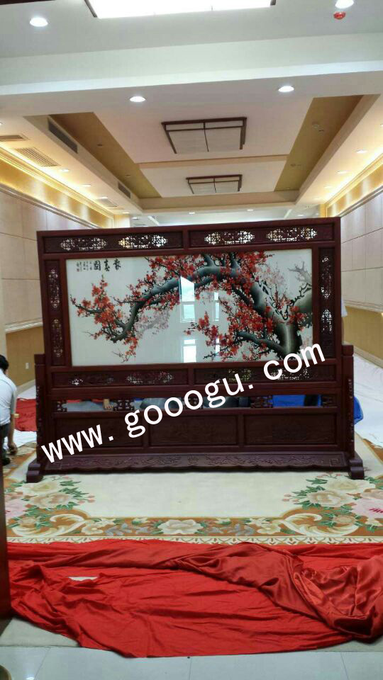 嬌古蘇繡精品刺繡 萬紫千紅屏風 客廳會所雙面繡屏風 純手工刺繡