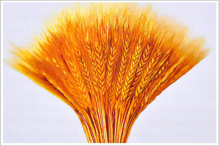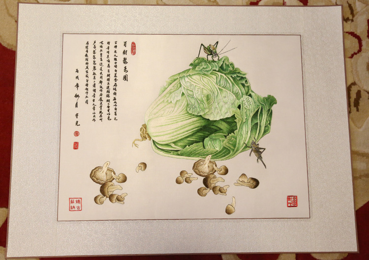 大家都知道,白菜很容易成活,其產(chǎn)量很高,它的葉子是一片片包攏住菜心的。所以自古白菜便寓意著連年大豐收、風(fēng)調(diào)雨順、五谷豐登。而白菜的諧音是“百財(cái)”、”擺財(cái),“精致的菜葉包裹著菜心“財(cái)心”,所以又有守住財(cái)富的寓意。由此,這一款“百財(cái)聚來(lái)圖”自古便向人傳遞著美好的夙愿。?? ?????? 我們尋找著秋天,它也許藏在火通通的柿子樹(shù)梢,也許藏在綠油油的菜地間,但要說(shuō)秋是什么顏色,吹風(fēng)麥浪的景象應(yīng)該會(huì)立馬浮現(xiàn)在大部分人的腦海里吧。只因?yàn)榍?,本就是收獲的季節(jié),金黃色的浪花,成熟的麥穗被沉甸甸的果實(shí)壓彎了腰,農(nóng)民伯伯笑開(kāi)了顏。我想,這金黃的季節(jié)也許就藏在金燦燦的稻穗上吧。很神奇的是,當(dāng)它們是空著的時(shí)候,必然會(huì)茁壯挺立,昂首睨視;但但凡它們臻于成熟,飽含鼓脹的麥粒,它們便謙遜地低垂著頭,不露鋒芒。??做人理應(yīng)如麥穗,不管是在什么情況下,保持真我,處于劣勢(shì)的時(shí)候不自卑,有優(yōu)勢(shì)的時(shí)候不驕傲,人生自然會(huì)取得收獲。?? ????????