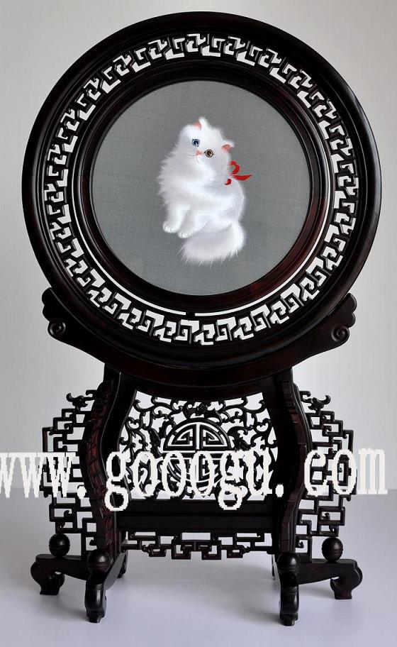 目前市場(chǎng)最常見(jiàn)的是國(guó)畫人物、山水等機(jī)繡作品,即用縫紉機(jī)來(lái)繡,所用材料不是蠶絲。機(jī)繡的手感硬,線條粗,色彩沒(méi)有明暗、虛實(shí)和漸變。因?yàn)槎际桥炕a(chǎn),電腦操作,一個(gè)工廠一天可以出幾百幅作品,所以連工藝品都算不上,只能叫工業(yè)品。有心收藏的,拿一幅機(jī)繡和一幅手工精品對(duì)比,立馬就能看出其中的區(qū)別。同樣大小面積,機(jī)繡的要比手工的重一兩倍,如果機(jī)繡的要100元,那么高級(jí)的手工蘇繡就要幾萬(wàn)元了。