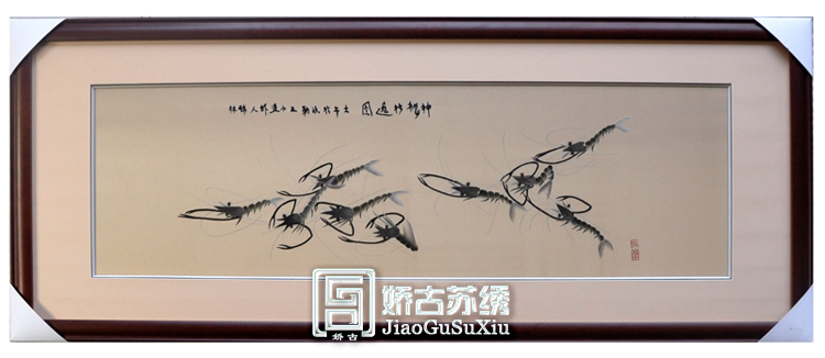 辦公室書(shū)房裝飾畫(huà)蘇繡單面繡壁畫(huà)接待室裝飾壁畫(huà)齊白石蝦中式掛畫(huà)