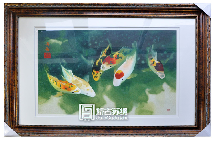 蘇繡手工刺繡畫(huà)居家裝飾壁畫(huà)錦魚(yú)圖客廳沙發(fā)后背景墻畫(huà)
