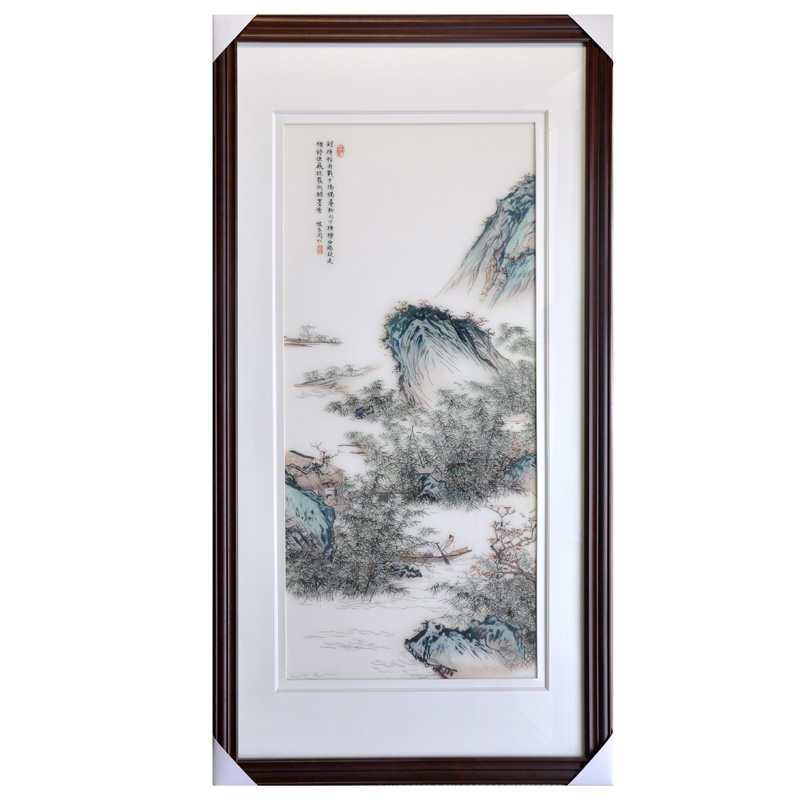 蘇繡山水壁畫(huà)豎款山水作品新中式裝飾壁畫(huà)