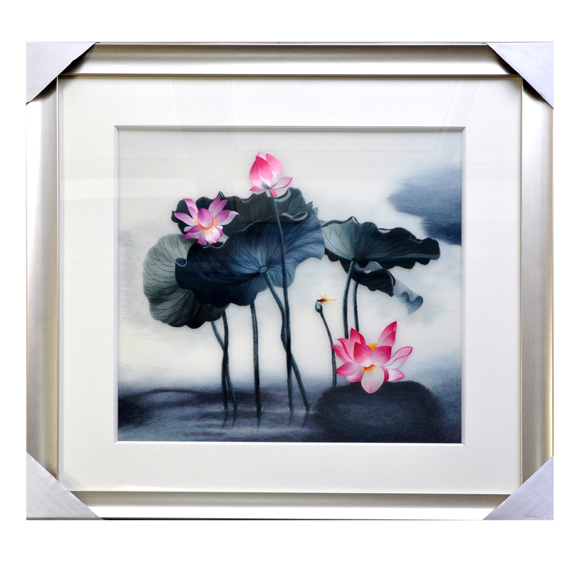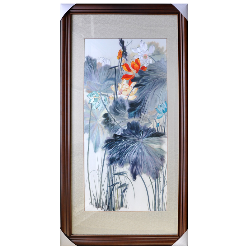 蘇繡版水墨荷花 真絲壁畫 刺繡工藝品 書房客廳裝飾畫