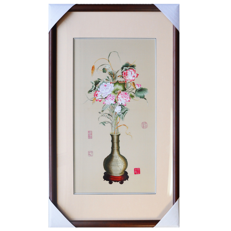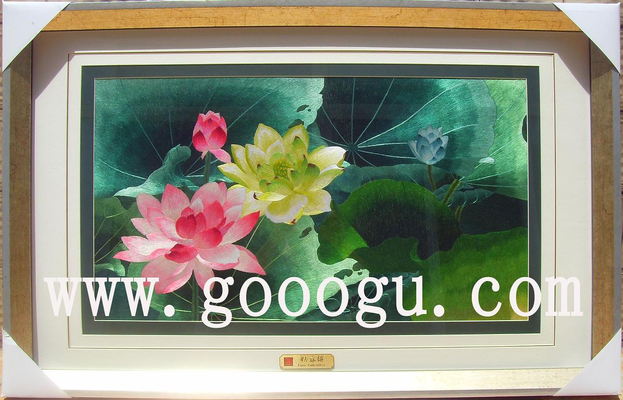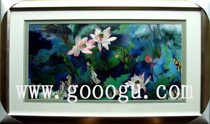 荷花蘇繡畫|手工刺繡藝術(shù)畫|客廳裝飾畫
