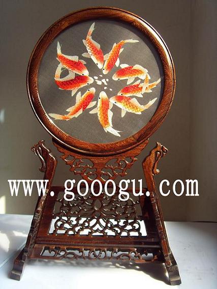 嬌古蘇繡木質(zhì)屏風(fēng) 玄關(guān)雙面繡 簡(jiǎn)易大方 十二紅魚(yú)圖特色中國(guó)風(fēng)