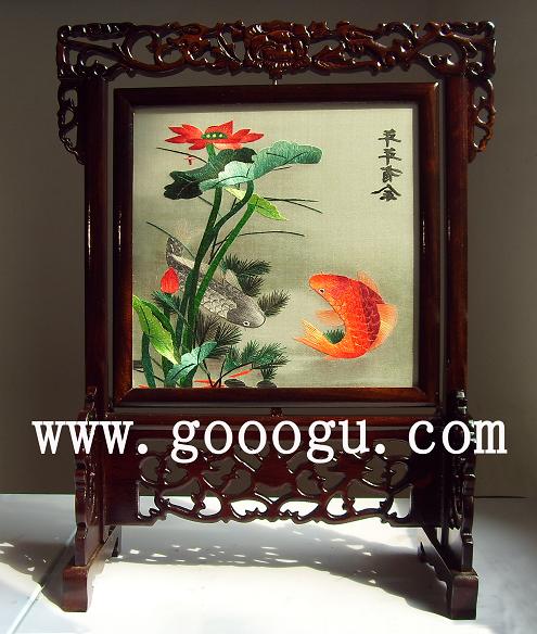 回型架蘇州雙面繡|手工蘇州刺繡|刺繡小桌屏