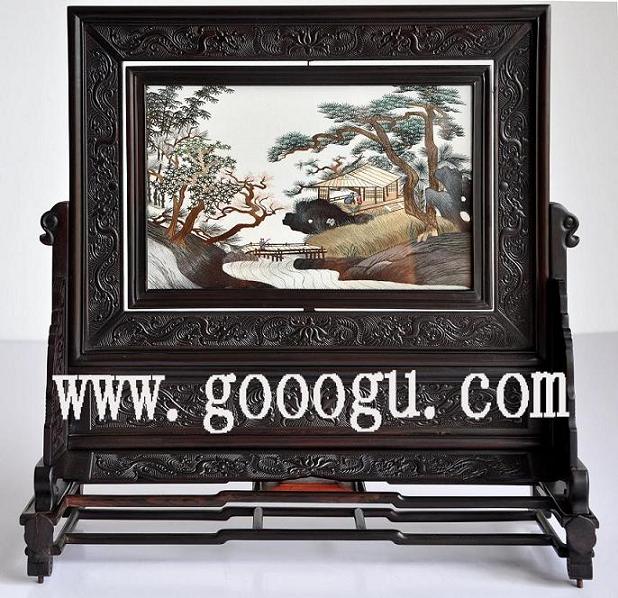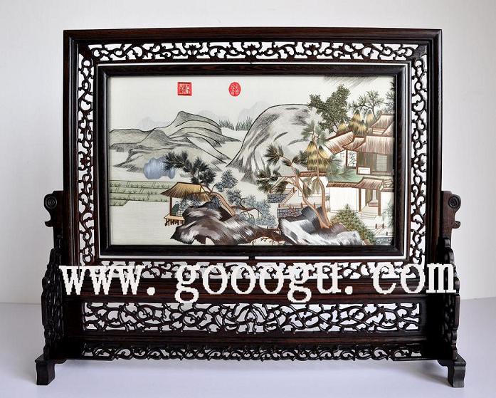 風(fēng)景雙面臺屏唐寅山水雙面繡外資企業(yè)采購團(tuán)購特色好繡品