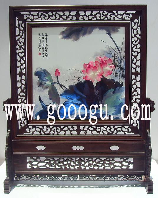中型蘇繡橫架臺屏|刺繡雙面繡|雞翅木手工雕花架-蘇州刺繡