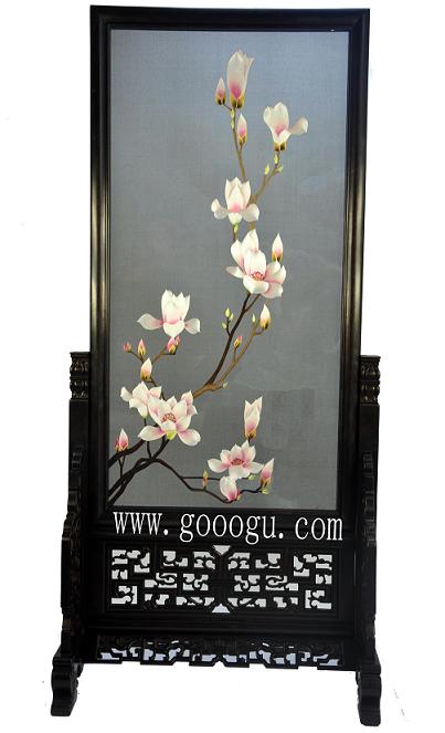 傳統(tǒng)蘇繡精品玉蘭花雙面繡擺件收藏白玉蘭刺繡臺屏