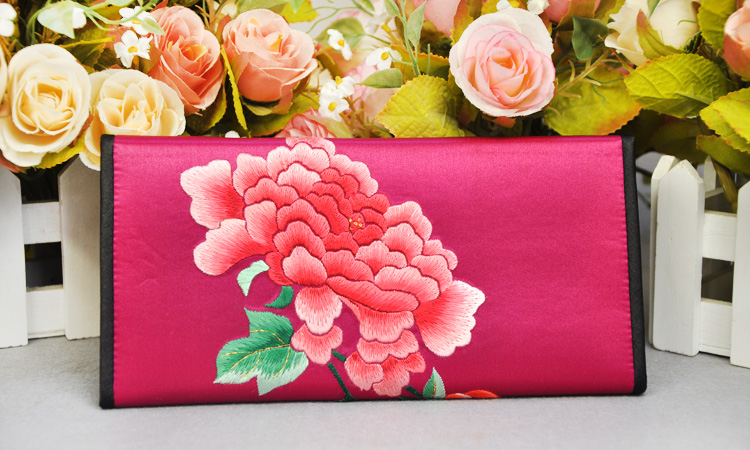 平繡牡丹 純手工刺繡 蘇繡錢包 高檔特色禮品 送領(lǐng)導(dǎo)送外國(guó)人禮品