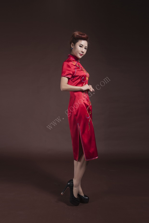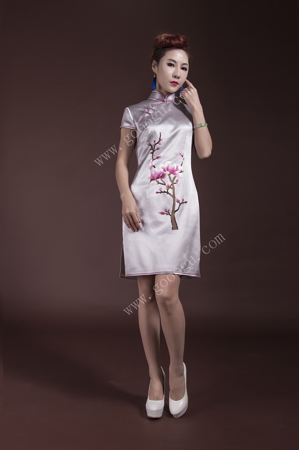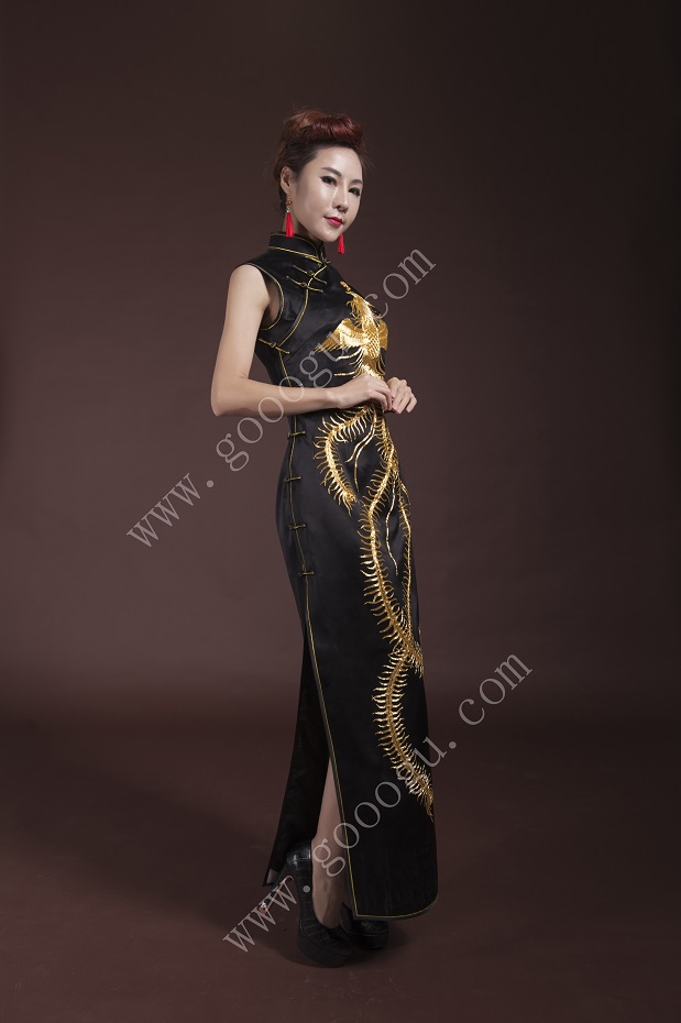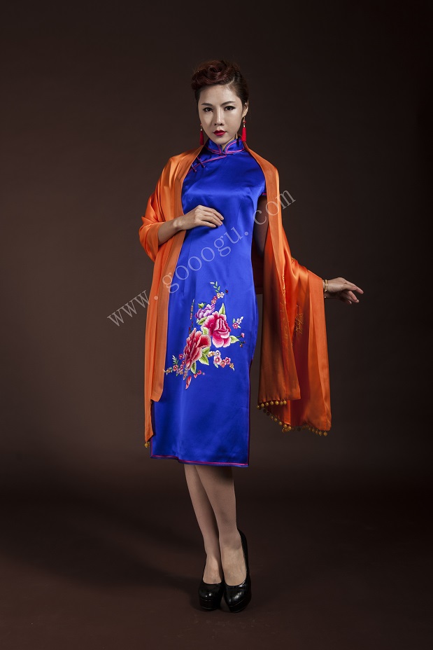 嬌古絲綢純手工刺繡禮服旗袍、流行服裝舞會(huì)聚會(huì)專用服飾