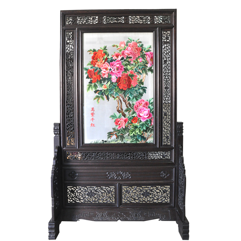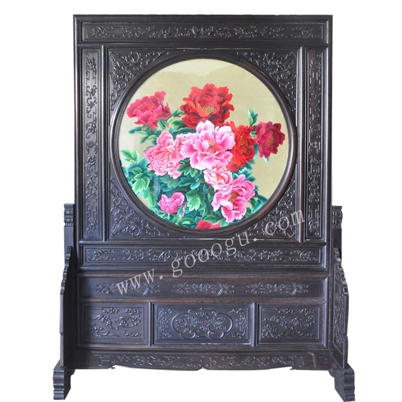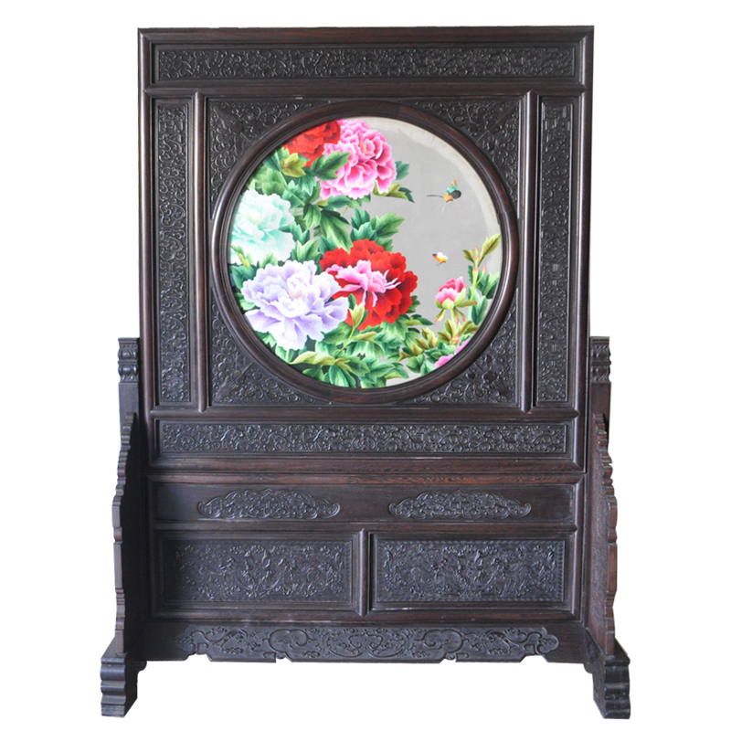 蘇繡隔斷 玄關(guān)牡丹屏風(fēng) 手工雙面刺繡 國花傳統(tǒng)工藝品禮品