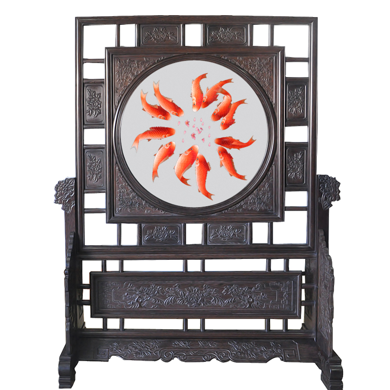 嬌古蘇繡木質(zhì)屏風(fēng) 玄關(guān)雙面繡 簡易大方 十二紅魚圖特色中國風(fēng)
