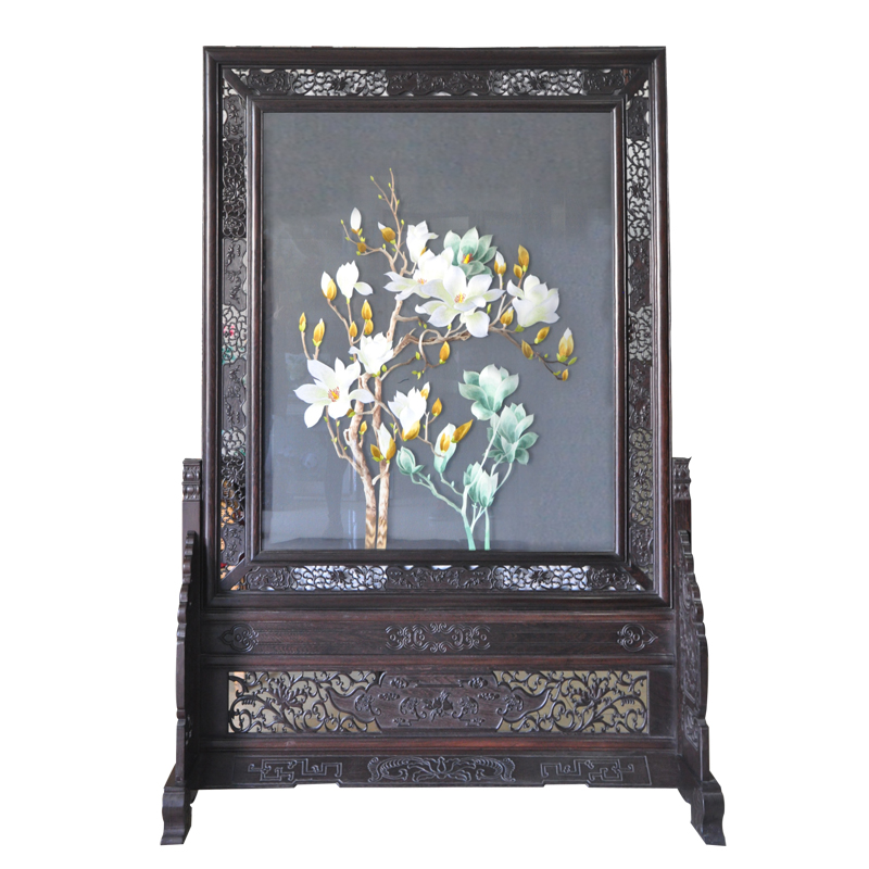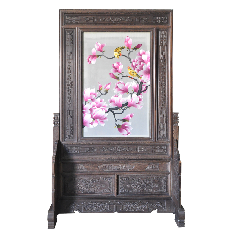 家用蘇繡隔斷 玉蘭雙鳥屏風(fēng) 精品雙面刺繡 國花傳統(tǒng)工藝品禮品