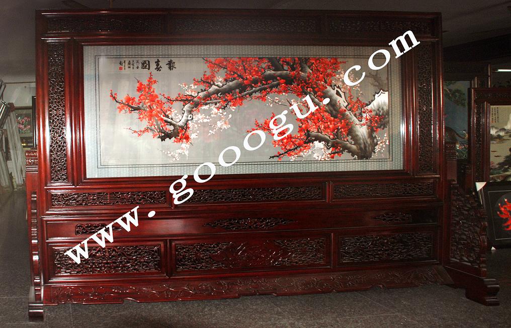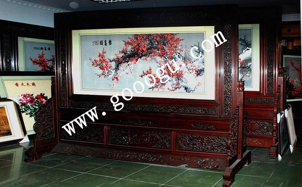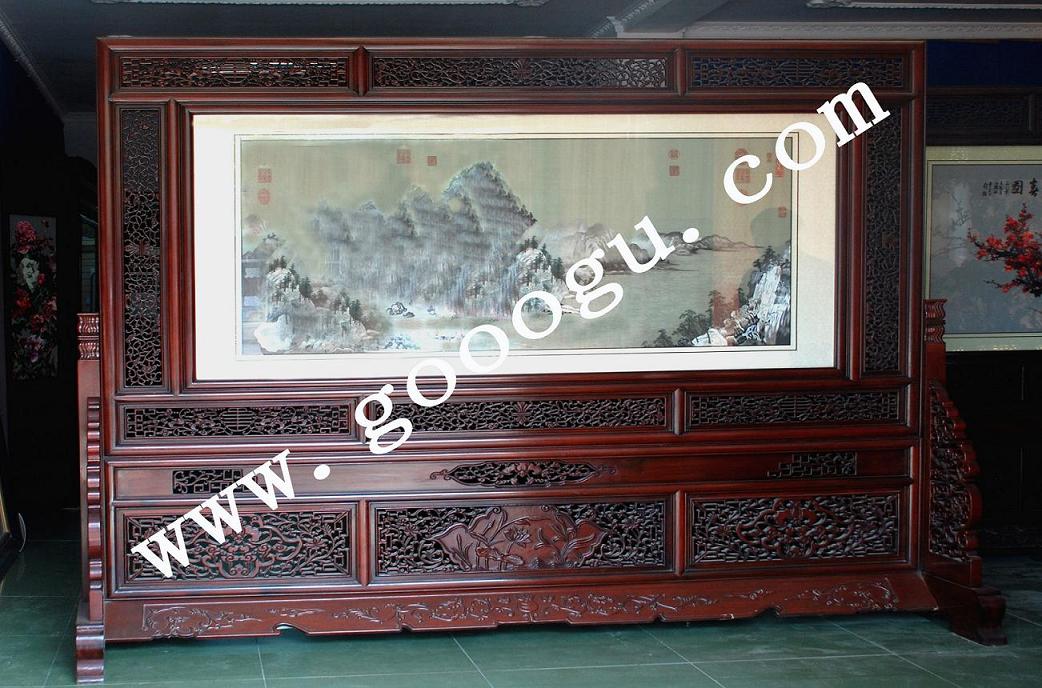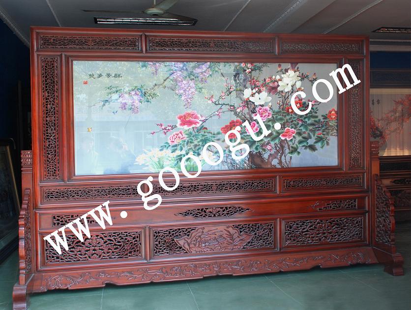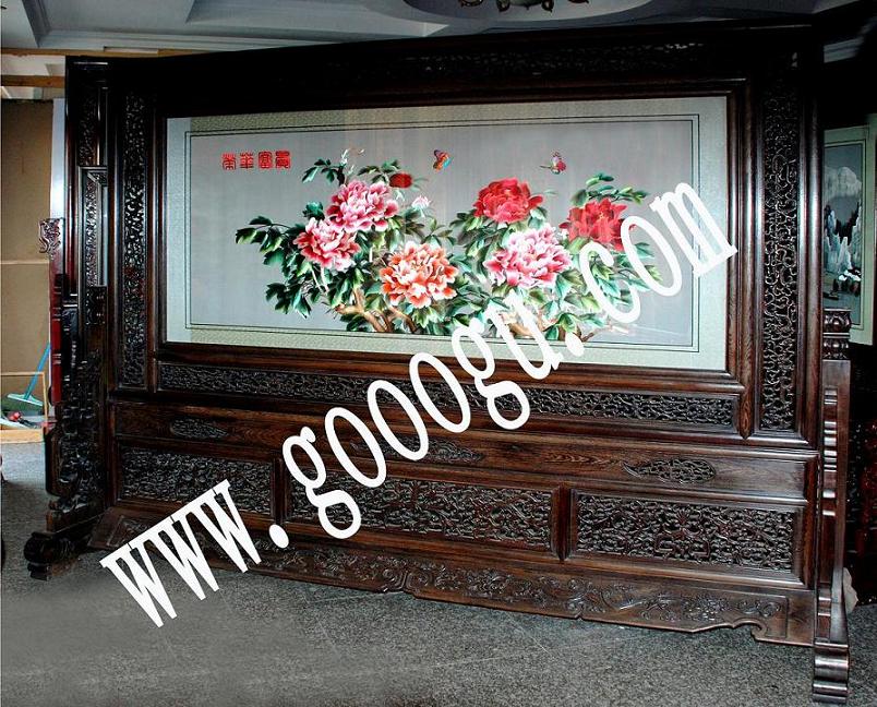 大型風景刺繡屏風|木雕屏風|雙面繡屏風