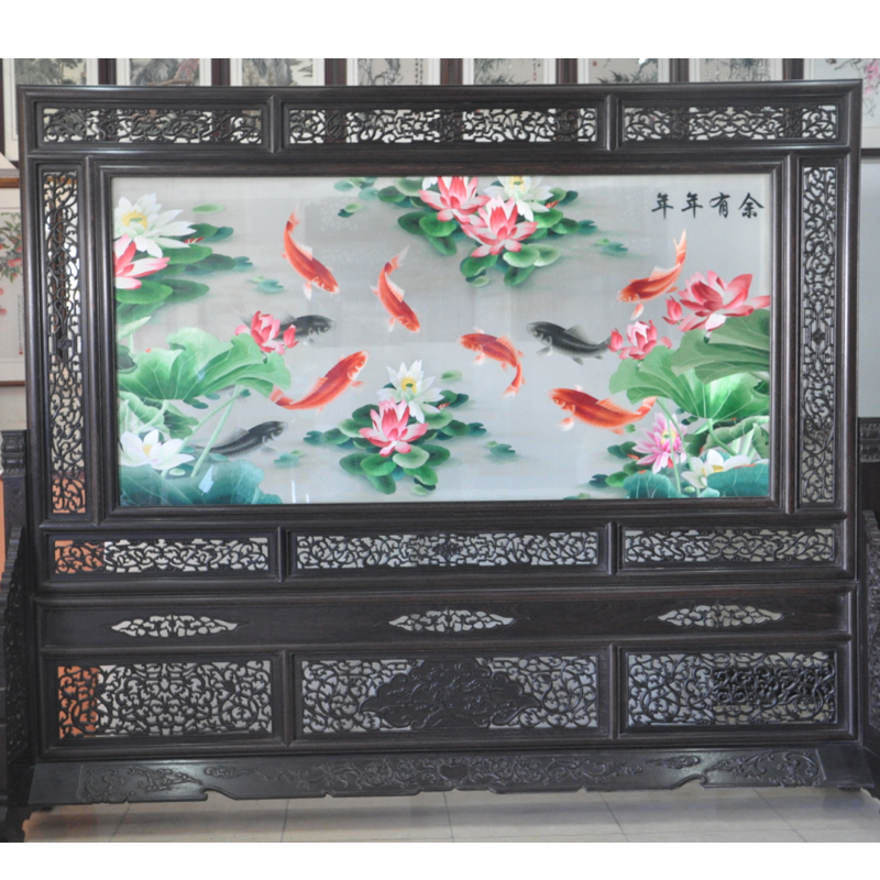 蘇繡蓮花魚屏風 純手工工藝品 大廳會所入口隔斷 紅魚精品刺繡