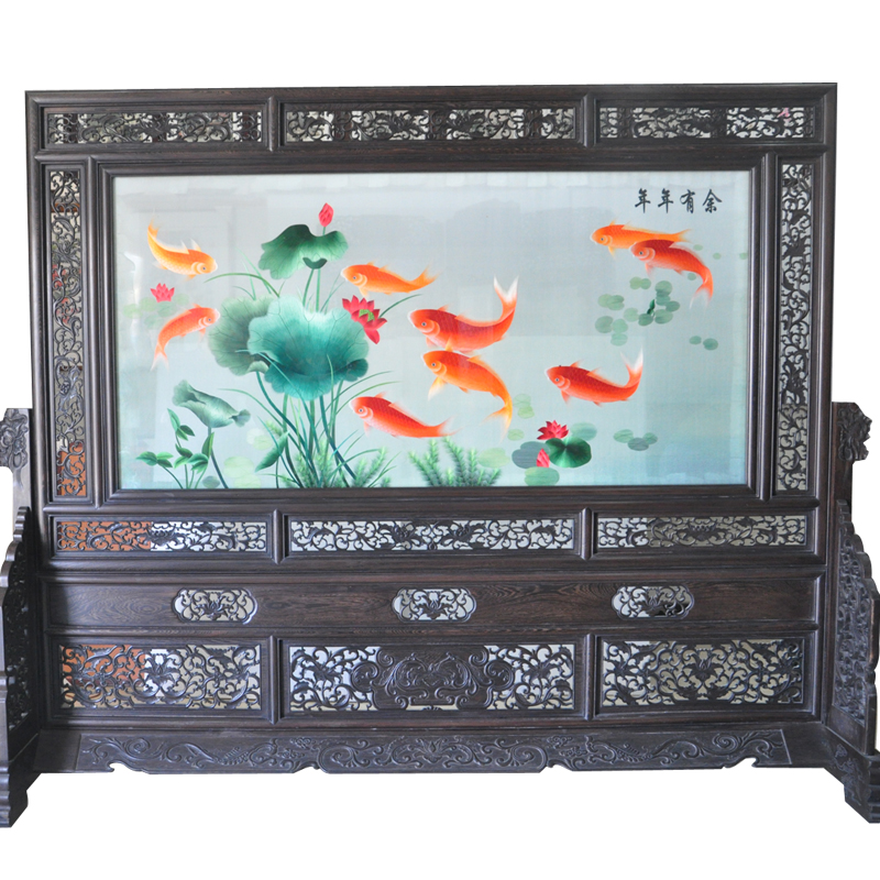 嬌古蘇繡木質(zhì)屏風 玄關雙面繡 簡易大方 十二紅魚圖特色中國風