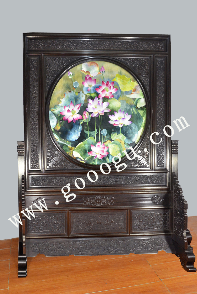 蘇繡工藝屏風 中式裝修隔斷 家庭公司兩用玄關(guān) 荷花精品