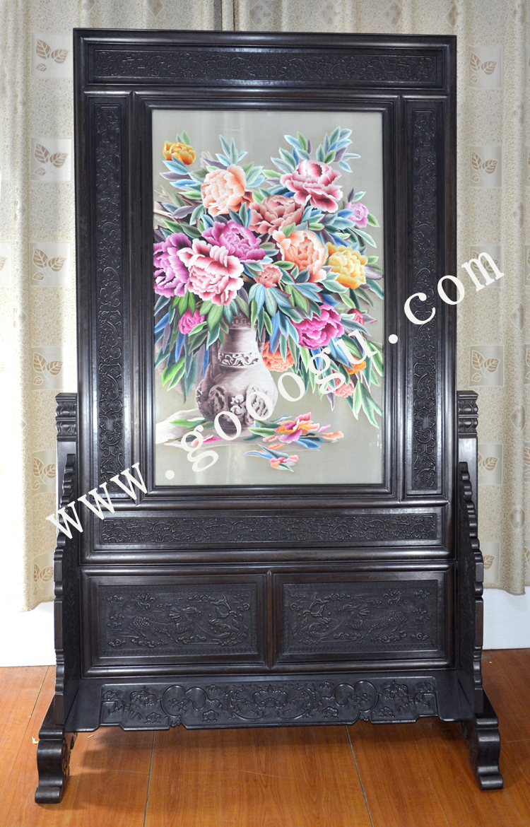 蘇繡屏風 牡丹花 家用玄關(guān) 雙面繡工藝禮品 高檔刺繡