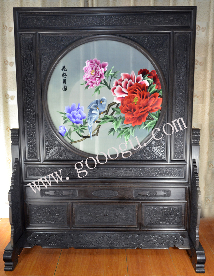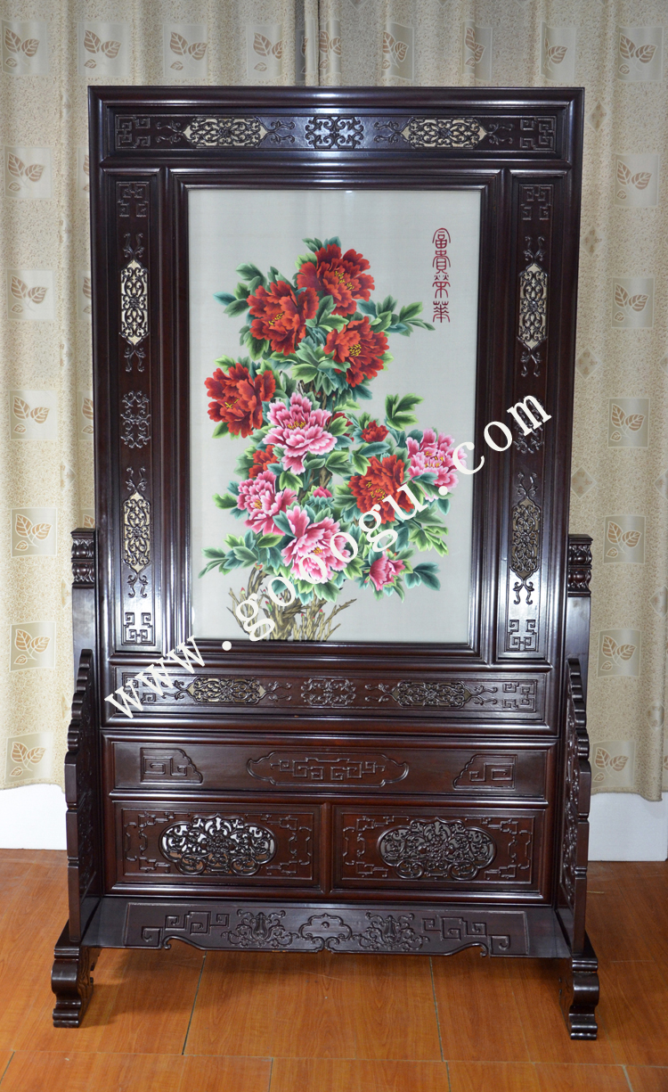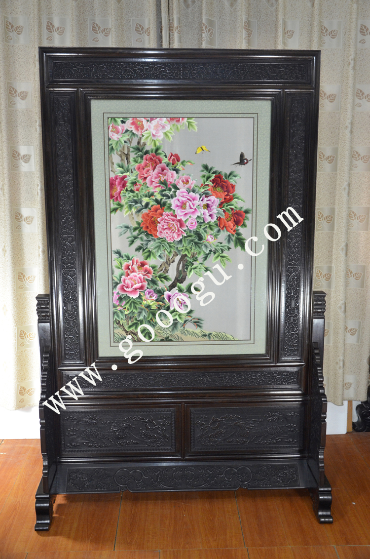 玄關(guān)家用屏風 雙面繡屏風 木質(zhì)玄關(guān) 榮華富貴牡丹圖