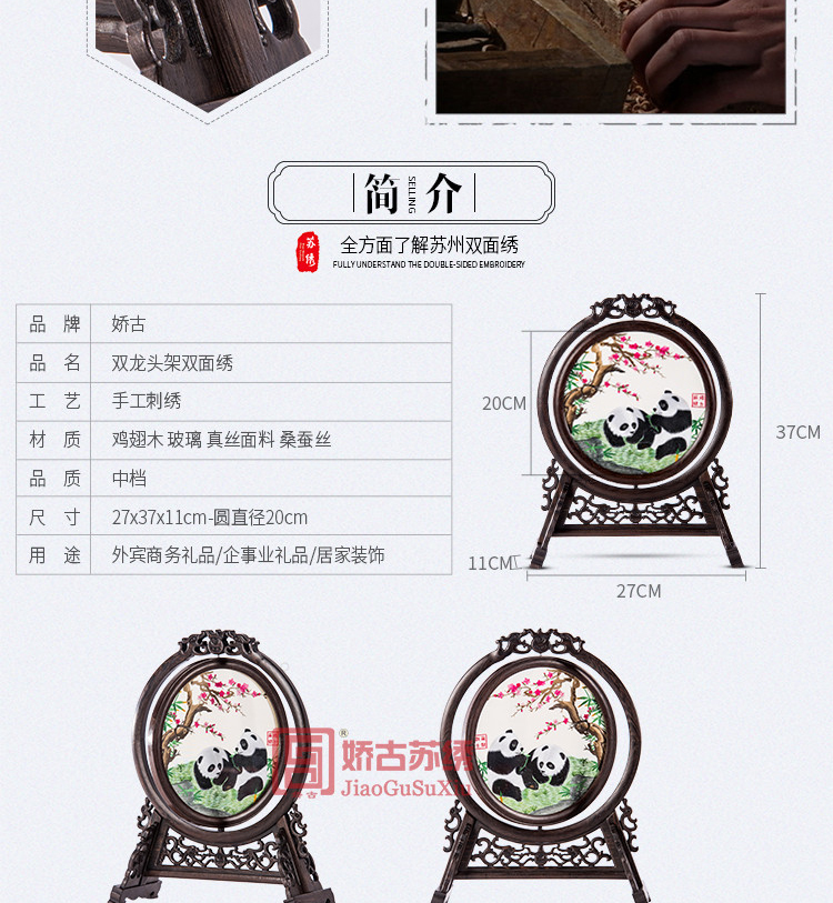 雙龍頭架雙面繡|蘇州刺繡禮品|企業(yè)定制刺繡禮品|定制企業(yè)LOGO禮品