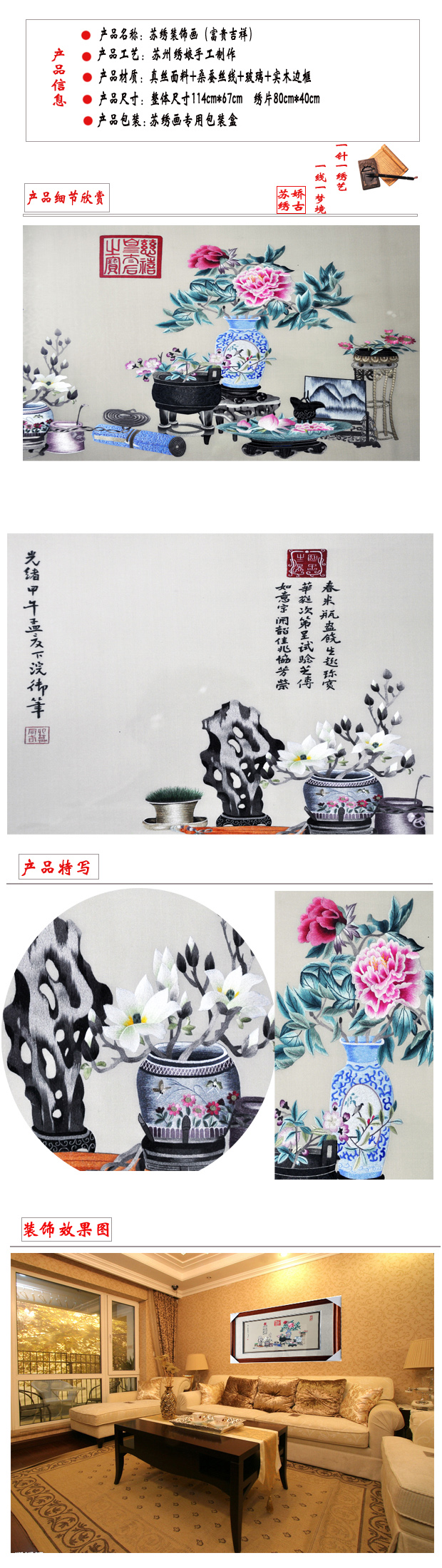 精品蘇繡裝飾壁畫、客廳裝飾畫、喬遷禮品(富貴吉祥)