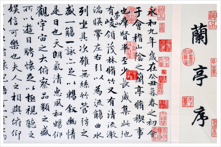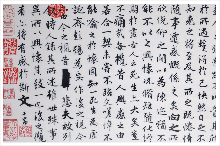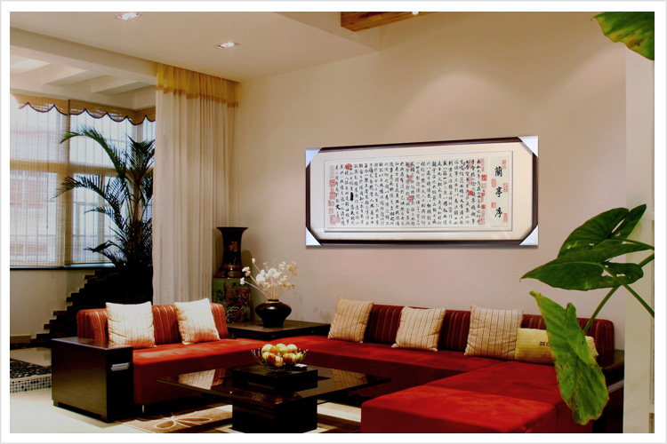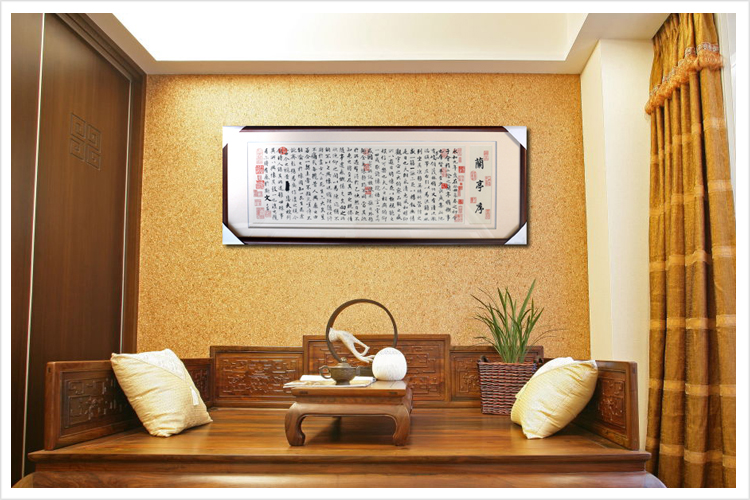 【品 牌】:嬌古 (作品代碼 D-1042) 【品 名】:蘭亭序裝飾畫(手工蘇繡) 【品 質(zhì)】:2-4絲刺繡 (蘇繡小知識:1根蘇繡絲線可分為16絲,中檔刺繡皆為10絲所繡,中高檔刺繡皆為6-8絲,高檔刺繡皆為4-6絲,精品刺繡皆為1-4絲) 【尺 寸】:畫心尺寸44*117cm 整體尺寸60*147cm 【產(chǎn)品工藝】:手工刺繡+真絲底料 【絲線材質(zhì)】:蠶絲線 【用 途】:家居裝飾及政府禮品、外賓禮品、生日禮物、賀壽禮品、領(lǐng)導升遷、出國禮品等等。 【出廠價格】:12000元 【作品介紹】:東晉穆帝(司馬聃)永和九年(公元353年)三月初三日,王羲之和當時名士孫綽、謝安和釋支遁等四十一人,為禊事活動,在蘭亭宴集。與會的人士都有詩作,事后把這些詩篇匯編成集,《蘭亭集序》就是王羲之為這個詩集所寫的序言。序,文體名,是對書籍和文章舉其綱要、論其大旨的一種文字,相當于引言。 《蘭亭集序》文字燦爛,字字珠璣,是一篇膾炙人口的優(yōu)美散文,它打破成規(guī),自辟徑蹊,不落窠臼,雋妙雅逸,不論繪景抒情,還是評史述志,都令人耳目一新。雖然前后心態(tài)矛盾,但總體看,還是積極向上的,特別是在當時談玄成風的東晉時代氣氛中,提出一死生為虛誕,齊彭殤為妄作,尤為可貴。《蘭亭集序[1]》的更大成就在于它的書法藝術(shù)。通篇氣息淡和空靈、瀟灑自然;用筆遒媚飄逸;手法既平和又奇崛,大小參差 ,既有精心安排藝術(shù)匠心,又沒有做作雕琢的痕跡,自然天成。其中,凡是相同的字, 寫法各不相同,各有變化,特別是字,達到了藝術(shù)上多樣與統(tǒng)一的效果?!短m亭集序》是王羲之書法藝術(shù)的代表作,是中國書法藝術(shù) 史上的一座高峰,它滋養(yǎng)了一代又一代書法家。 在結(jié)構(gòu)和章法上以情感為線索,敘中有情,以情說理。第一段在清麗的境界中,著重寫樂字,由樂而轉(zhuǎn)入沉思,引出第二段的痛字,在經(jīng)過一番痛苦的思考后,不覺感到無限的悲哀,最后以一悲字作結(jié)。情感色彩迥乎不同,前后過渡卻妥帖自然。 細節(jié)圖