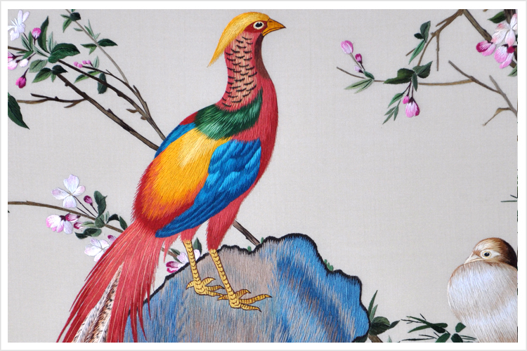【品 牌】:嬌古 (作品代碼 D-1036) 【品 名】:郎世寧工筆錦雞牡丹裝飾畫(手工蘇繡) 【品 質(zhì)】:1-2絲刺繡 (蘇繡小知識:1根蘇繡絲線可分為16絲,中檔刺繡皆為10絲所繡,中高檔刺繡皆為6-8絲,高檔刺繡皆為4-6絲,精品刺繡皆為1-4絲) 【尺 寸】:畫心尺寸50*98cm 整體尺寸73*130cm 【產(chǎn)品工藝】:手工刺繡 【絲線材質(zhì)】:蠶絲線 【用 途】:居家裝飾及政府禮品、外賓禮品、生日禮物、賀壽禮品、領(lǐng)導(dǎo)升遷、出國禮品等等。 【出廠價格】:28000元 細(xì)節(jié)圖 .jpg)