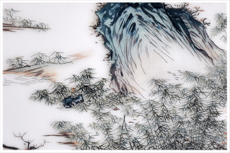 【品 牌】:嬌古 (作品代碼 D-1028) 【品 名】:南岸山水裝飾畫(手工蘇繡) 【品 質】:1-2絲刺繡 (蘇繡小知識:1根蘇繡絲線可分為16絲,中檔刺繡皆為10絲所繡,中高檔刺繡皆為6-8絲,高檔刺繡皆為4-6絲,精品刺繡皆為1-4絲) 【尺 寸】:畫心尺寸50*100cm 整體尺寸75*130cm 【產品工藝】:手工刺繡 【絲線材質】:蠶絲線 。 【用 途】:居家裝飾或送政府禮品、外賓禮品、生日禮物、賀壽禮品、領導升遷、出國禮品等等。 【出廠價格】:15000元 【細節(jié)圖】