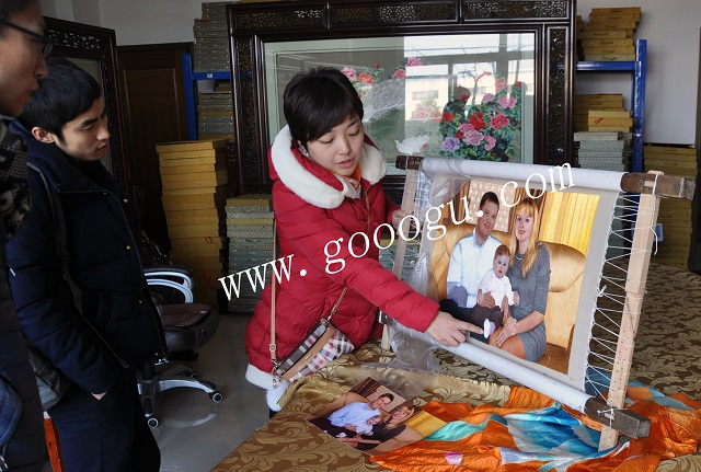 以下是客戶定制的人物肖像作品,繡工精細程度已經達到行業(yè)內最高水平,客戶正在做認真細致的對比,對作品的工藝是非常的滿意。