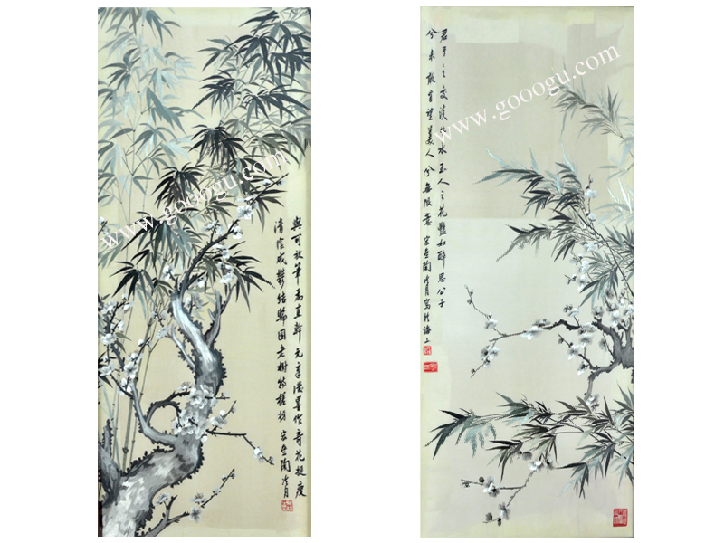 【產(chǎn)品名稱(chēng)】:紅木蘇繡屏風(fēng)---梅竹(雙面繡) (作品代碼:ZP-1004) 【產(chǎn)品規(guī)格】:圖案尺寸寬35CM每扇,高90CM每扇 外框整體尺寸寬60cm每扇,高210cm每扇 【產(chǎn)品工藝】:手工刺繡 【產(chǎn)品材質(zhì)】:真絲面料+紅木框+桑蠶絲線(xiàn)+玻璃 【產(chǎn)品包裝】:木箱包裝,用海綿包扎,確保運(yùn)輸安全 【出廠(chǎng)價(jià)】:56800元 【產(chǎn)品運(yùn)輸】:我司負(fù)責(zé)發(fā)往客戶(hù)指定地點(diǎn),蘇州附近城市可送貨上門(mén)! 【產(chǎn)品說(shuō)明】:此款紅木雙面繡折疊屏風(fēng),是由蘇州工藝師耗時(shí)數(shù)個(gè)月精心手工刺繡而成,刺繡圖案為中國(guó)傳統(tǒng)的梅花和竹子,繡工精細(xì),顏色搭配均勻,整體給人舒適,愜意之感,紅木框架做工精細(xì)手工打磨,是蘇繡屏風(fēng)中的經(jīng)典作品。是企事業(yè)大堂或大廳的重要裝飾品之一!歡迎親臨嬌古蘇繡展示廳觀看實(shí)物! 【作品欣賞】 .jpg)