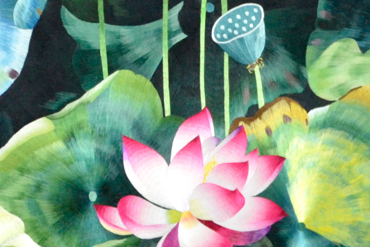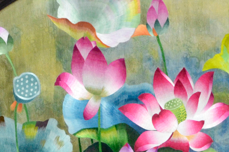【產(chǎn)品名稱】:滿繡荷花屏風 (作品代碼:P-1098) 【產(chǎn)品規(guī)格】:圖案尺寸為100cm直徑的圓 外框整體尺寸寬160cm,高210cm 【產(chǎn)品工藝】:手工刺繡 【產(chǎn)品材質】:真絲面料+雞翅木框+桑蠶絲線+玻璃 【產(chǎn)品包裝】:木箱包裝,用海綿包扎,確保運輸安全 【出廠價】:36800元 【產(chǎn)品運輸】:我司負責發(fā)往客戶指定地點,蘇州附近城市可送貨上門! 【產(chǎn)品說明】:此款雙面繡屏風,是由蘇州工藝師耗時三個月精心手工刺繡而成,刺繡圖案以荷花為題材繡工精細,顏色搭配均勻過渡自然,整體給人舒適,愜意之感,屏風的框架選用雞翅木為料,是蘇繡屏風中的經(jīng)典作品。是家用玄關或辦公室玄關的雅致禮品!歡迎親臨嬌古蘇繡展示廳觀看實物! 【作品欣賞】 .jpg)