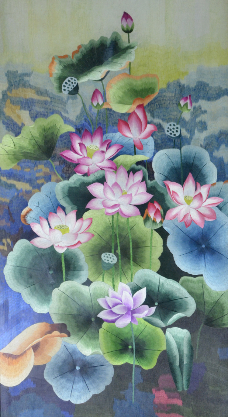 【產(chǎn)品名稱】:蘇繡荷花屏風(fēng)(雙面繡) (作品代碼:P-1202) 【產(chǎn)品規(guī)格】:圖案尺寸寬度60cm,高度125cm 外框整體尺寸寬100cm,高205cm 【產(chǎn)品工藝】:手工刺繡 【產(chǎn)品材質(zhì)】:真絲面料+雞翅木框+桑蠶絲線+玻璃 【產(chǎn)品包裝】:木箱包裝,用海綿包扎,確保運輸安全 【出廠價】:18000元 【產(chǎn)品運輸】:我司負(fù)責(zé)發(fā)往客戶指定地點,蘇州附近城市可送貨上門! 【產(chǎn)品說明】:此款荷花雙面繡屏風(fēng),是由蘇州工藝師耗時數(shù)個月精心手工刺繡而成,刺繡圖案以荷花為題材繡工精細(xì),顏色搭配均勻過渡自然,屏風(fēng)的框架選用進(jìn)口的雞翅木為料,是蘇繡屏風(fēng)中的經(jīng)典作品。是企事業(yè)大堂或大廳的重要裝飾品之一!歡迎親臨嬌古蘇繡展示廳觀看實物! 【作品欣賞】 .jpg)